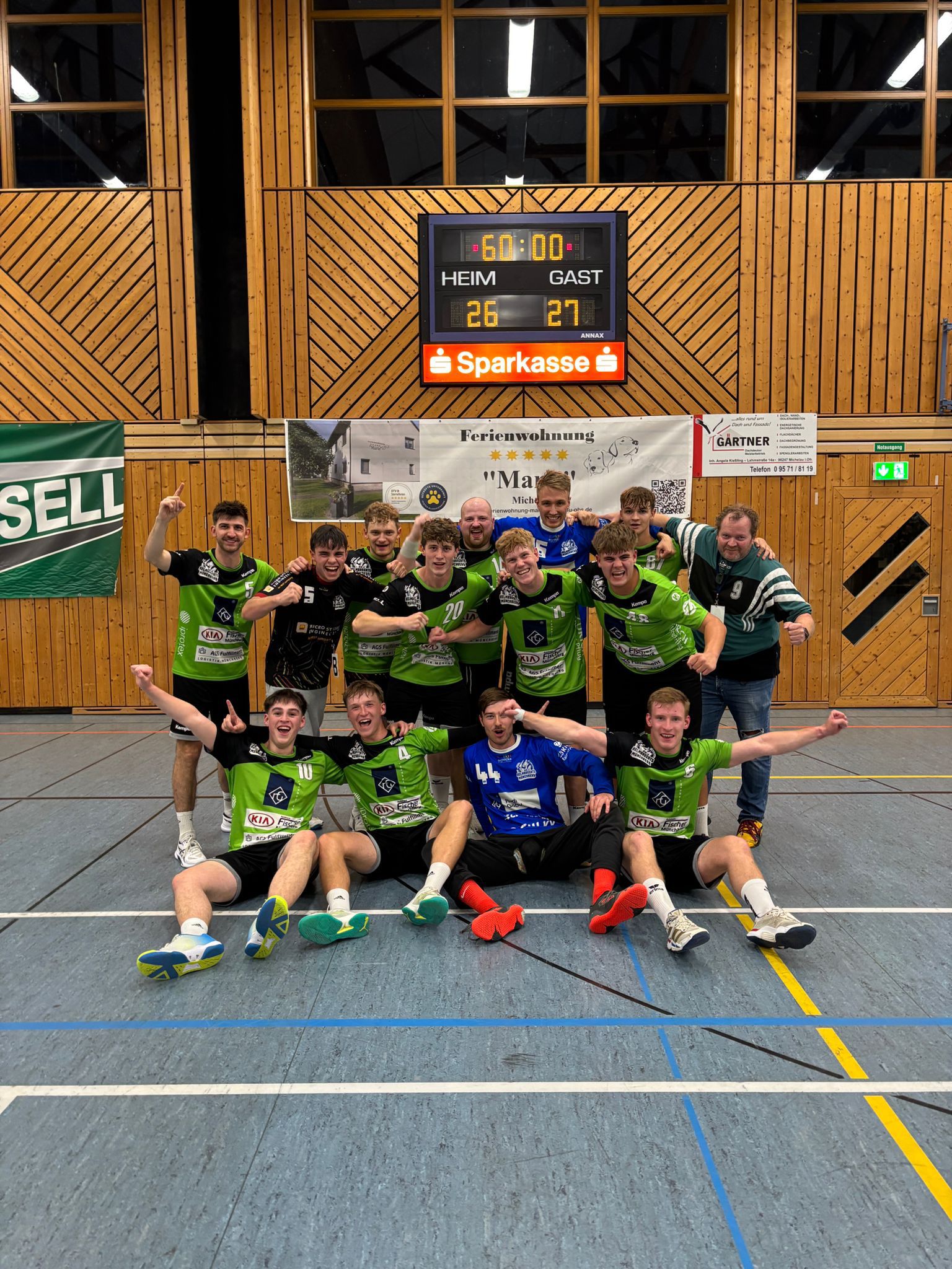Auswärtssieg schallte es durch die Mainfeldhalle in Michelau. Nach 60 spannenden Minuten erlöste David Mayer die junge Truppe mit seinem Treffer 10 Sekunden vor dem Ende. Der Jubel über die ersten beiden Punkte war grenzenlos.